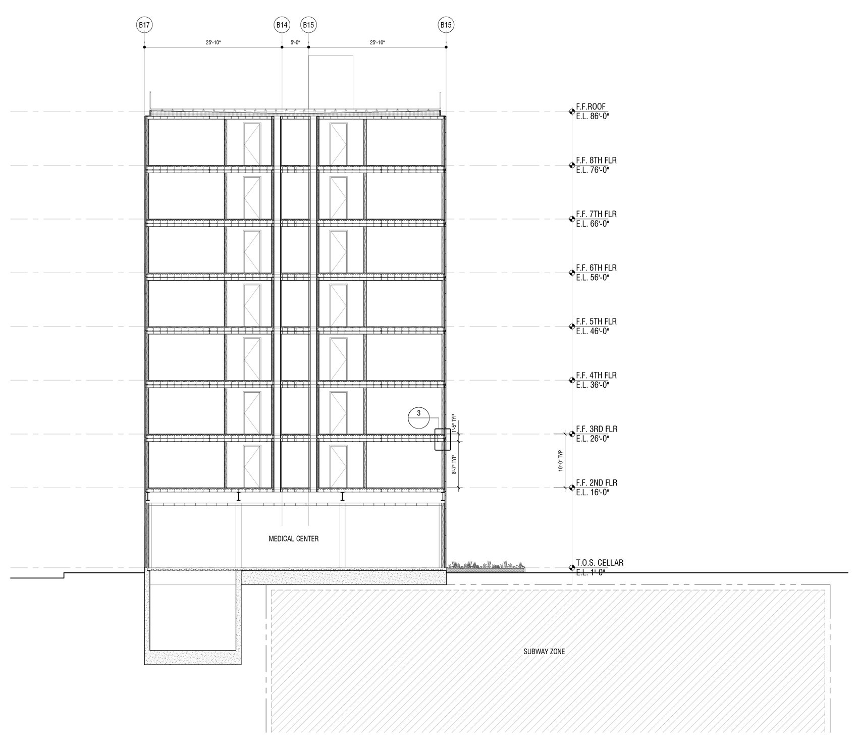 The City Line Assembly will create a new, highly visible landmark, indicating a place of concentrated amenities, services and connection. The creation of a passage and park between Grant Avenue and Eldert Lane will provide a variety of connections, uses and benefits. It will link green spaces at the larger urban scale, as it joins with Robert E. Venable Park, the Conduit Ave. median, and Eldert Lane. It will also create a pleasant link from the new development and the local neighborhood to the Liberty Avenue commercial corridor – which is the primary local shopping destination.